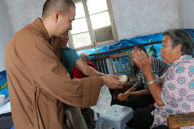 保定佛教资讯:2016年9月10日上午,在中秋佳节来临之际,保定大慈爱心社一行,本着社长真广法师“以慈善福利社会”的精神,在副社长道悟法师的带领下来到清苑县大魏村、白团村,王罗侯村看望那里的孤寡老人,为老人们带去了中秋佳节的祝福和广大爱心人士的捐助,祝愿老人们身体健康,六时吉祥!