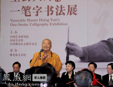 据悉,此次书法展由中国艺术研究院、中国美术馆与台湾佛光山文教基金会共同主办、台湾佛光缘美术馆承办。展期从2010年5月9日持续至5月15日,这也是星云大师首次在北京举办个人书法作品展。