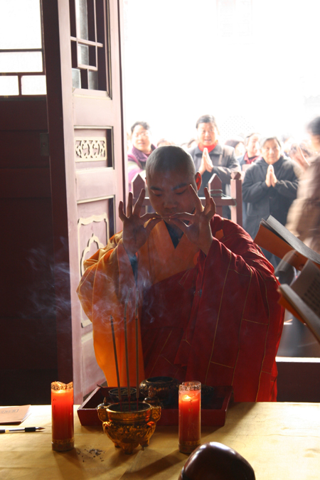 保定市佛教资讯网讯:4月5日,是一年一度的清明节。清明节是人们对先人寄托哀思、上坟洒扫祭奠的传统节日,为更好的将佛法慈悲济世的精神--“上报四重恩,下济三途苦”落实于现实生活,引领信众过一个“知恩报恩、文明向上”的清明节,惠予以故亲人真实之利。2010年4月5日下午,保定市真觉禅寺在保定关岳行宫施放大蒙山一堂,祈愿所有现世父母吉祥安康 得闻佛法 福慧增长,亡者远离恶道蒙佛加被离苦得乐!祈愿社会祥和,世界和平!此次法会由隆戒法师主法。