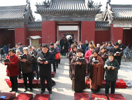 保定佛教资讯网讯:2010年4月3日(农历二月十九日),保定市真觉禅寺(大慈阁)上午九时举行了观音菩萨圣诞法会,四方信众前来参加同庆。上午法会结束后,大家在这里免费用斋,随后下午十四时举行超度法会。