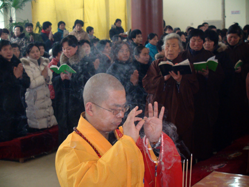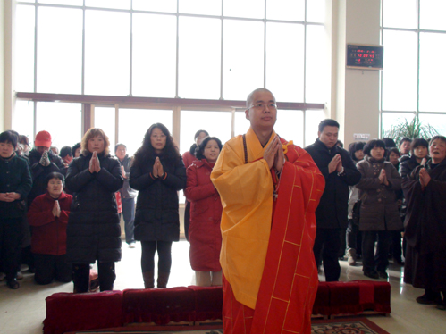 保定佛教资讯网讯:2010年2月28日(农历正月十五)上午9时许,在观音寺弘法楼隆重举行了大型祈福消灾吉祥法会,由真广法师和真源法师主法。法会开始,真广法师给与会信众做了开示,给大家讲解诵药师佛号的殊胜功德,并对昨晚举行的供灯吉祥消灾法会做了总结,然后对信众今后的修行提出了期许。接下来举行加持大悲圣水仪式,并发放给大众。