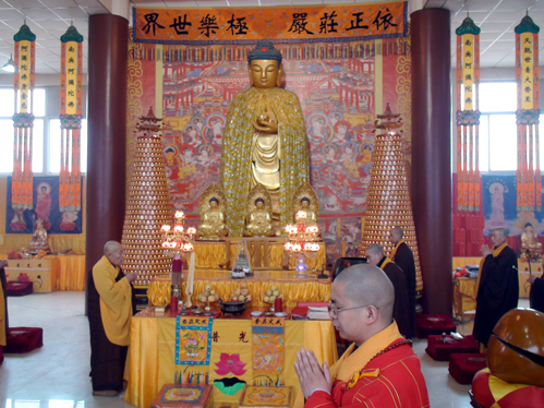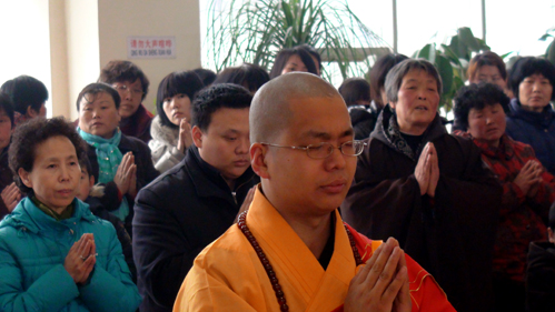 真源法师之后为与会大众祈福。整个法会庄严殊胜,无不欢喜充满。