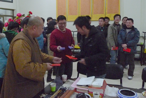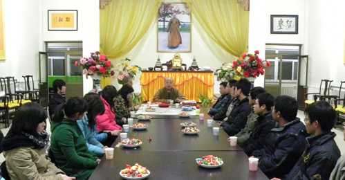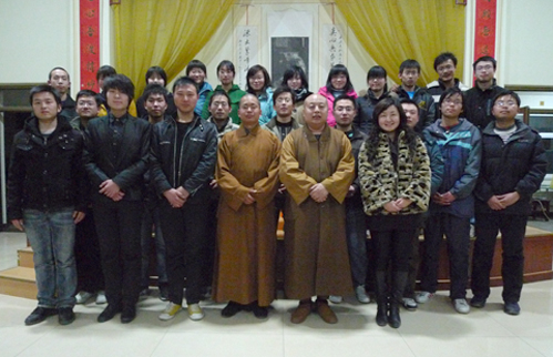 保定佛教信息网信息:2010年2月20日(正月初七)晚,保定市佛教协会会长、保定市真觉禅寺住持真广法师,邀请清苑县国公营村21名大学生在清苑县国公营观音寺举行了一场别开生面的座谈会,并在会后与大家一起联谊。