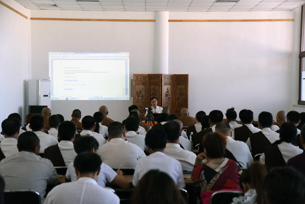 第一课由,由程院长主讲《法华经》,首先对《法华经》版本的形成及其基本内涵做了概要,并重点讲述了《法华经》里的“善巧方便”,并指出:方便究竟不是对立的,方便是觉悟的途径,时代变了,我们应该将佛陀教法做出更符合时代需要的方便解释。