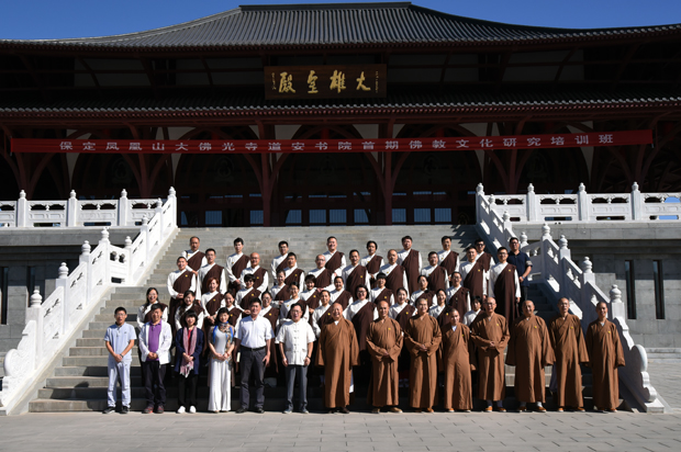 保定佛教资讯:2016年8月27日,阳光明媚,秋风飒爽,保定凤凰山大佛光寺道安书院第一期佛教文化研究培训班举行开班典礼,大佛光寺大尊长真广法师、道安书院院长程恭让教授、首期来自全国各地的50多名学员以及部分闻名而来的大众参加了典礼,典礼在大佛光寺“一悟即至佛地”(东配殿)举行。