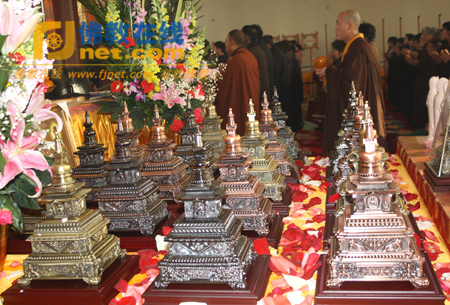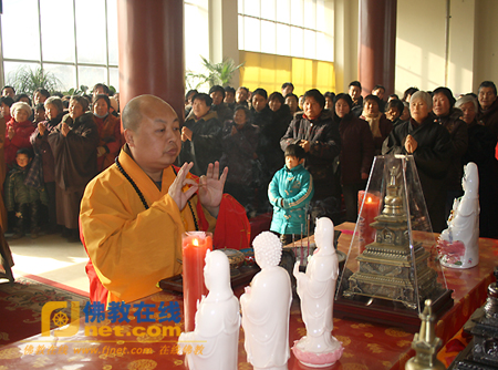 保定佛教资讯网讯: 2010年1月1日上午(农历二零零九年十一月十七日),恭逢阿弥陀佛圣诞,河北省保定市观音寺举行阿弥陀佛圣诞暨世界和平吉祥塔开光法会,保定市佛教协会会长真广法师应邀主持了宝塔开光法会。观音寺住持真源法师等法师及保定地区信众近千人参加了法会。