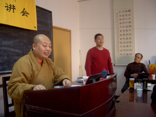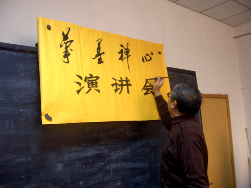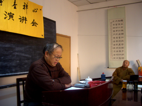 保定佛教资讯网讯 2009年12月9日上午,真广法师应保定市著名书画家赵凤桐老师邀请,於保定市老干部活动中心为广大书画爱好者作“笔墨禅心演讲会”。