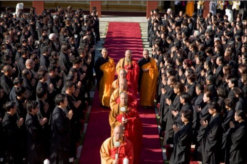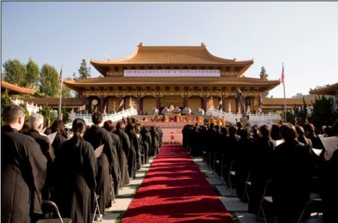 保定佛教资讯网讯 2009年11月22日,美国佛光山西来寺在西来寺的成佛大道隆重举行“甘露灌顶三皈五戒典礼”,佛光山开山宗长星云法师、辽宁省北普陀山普陀寺住持道极法师、河北省保定市真觉禅寺住持真广法师、西来寺住持慧济法师、西来寺住持助理慧圣法师五位法师共同主法,为来自美国各地的信众800余人传授三皈五戒,来自美国本地、加拿大、阿根廷、韩国、越南、泰国、欧洲等国家及地区信众近千人参加。