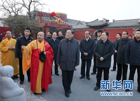 俞正声在真觉禅寺考察宗教活动场所和宗教团体自身建设情况