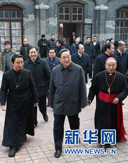 俞正声在天主教保定教区主教府考察宗教活动场所和宗教团体自身建设情况