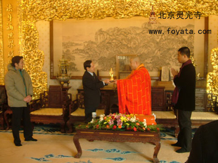 佛教在线北京讯 2009年1月27日上午,越南驻华大使 NGUYEN VAN THO 率使馆工作人员、驻京留学生、侨民等五十余人,到北京灵光寺欢度春节并参拜佛牙舍利,受到灵光寺方丈常藏法师的热情接待。宾主双方进行了亲切座谈并互赠了纪念品。