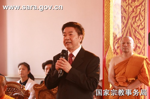 佛教在线河南讯 金秋九月,硕果璀璨,2014年9月26日上午,“泰国风格佛殿扩建竣工典礼暨佛像开光法会”在千年古刹洛阳白马寺举行。国家宗教事务局副局长张乐斌出席了活动并发表致辞。泰国副僧王、金山寺方丈帕蓬素提长老,泰国前内政部部长、泰国风格佛殿捐建者马裕炎先生,中国佛教协会副会长学诚法师、妙江法师,白马寺方丈印乐法师以及中泰两国僧人、嘉宾、善信约1000名参加了典礼。河南省宗教事务局彭亚平局长、河南省洛阳市有关方面负责人参加了相关活动。