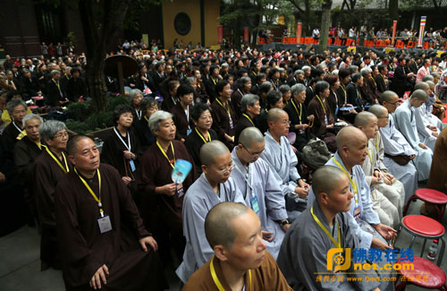 开幕式由允观法师主持,光泉法师和倪忠扬副主任分别代表省佛教协会和省宗教行政管理部门致辞。