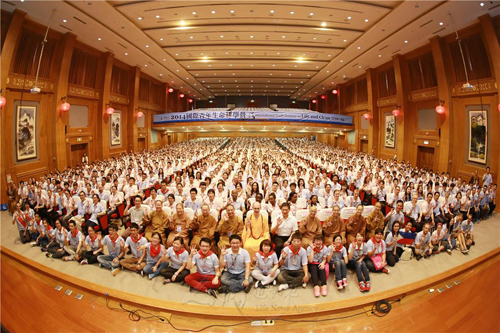佛教在线台湾讯 2014年7月17日,来自40个国家和地区、400所大学、使用18种语言、拥有不同族群、信仰、文化背景的1500位青年,齐聚佛光山如来殿大会堂,参与“2014国际青年生命禅学营”开幕典礼,共创不可思议的因缘,在联合国指定曲〈和谐〉的动人歌声中,发愿在为期1周的活动中,广结善缘,探索生命价值。