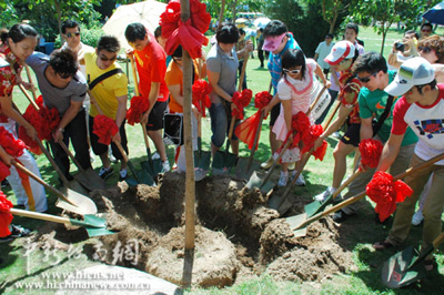 今天上午,三亚艳阳高照,椰风习习。上午十一时许,奥运冠军们乘车来到三亚南山文化旅游区,一起挥铲种下象征和平智慧的菩提树,开启了当天的感受佛教文化之旅。
