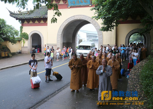 佛教在线浙江讯 2014年7月2日上午,杭州灵隐寺方丈光泉法师率僧俗弟子及云林志工团义工们共50余人,怀着一颗虔诚心、感恩心,三步一拜朝拜普陀山。以虔诚的朝圣之行现身说法,再次向世人展现了四众弟子精进、正行、苦修、济生的形象。