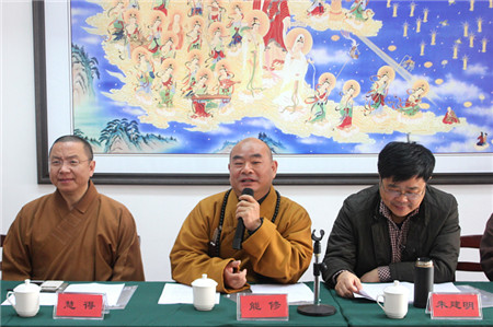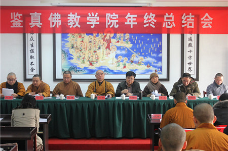 在会议上,鉴真佛教学院副院长蒋寿建总结了鉴真佛教学院在过去的一年,各项工作取得的进步。从坚持“爱国爱教”教育,培养学僧思想情操;坚持学修一体化,重视学僧道风和僧格建设;推进院、寺联合,拓展办学新路子;加强教学管理,努力提高教育质量;积极拓展办学功能,放大办学效益;编辑校刊简报、成功举办纪念鉴真东渡成功1260周年研讨会系列活动等方面对学院2013年度的工作进行了总结,并提出了2014年 度工作计划。