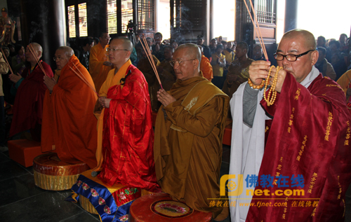 丽水市佛教协会会长、龙泉崇仁寺住持大愿法师,柬埔寨布格里大僧王,韩国佛教曹洞宗总务院长德牛法师,蒙古共和国佛教协会主席Ven.D.Natsagdorj,缅甸国家佛教Sasana大学校长Dr.Adiccavamsa为追思法会主法