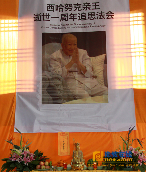 佛教在线浙江讯 2013年12月2日,西哈努克亲王逝世一周年追思法会在浙江丽水龙泉崇仁寺举办。丽水市佛教协会会长、龙泉崇仁寺住持大愿法师,柬埔寨布格里大僧王,韩国佛教曹洞宗总务院长德牛法师,蒙古共和国佛教协会主席Ven.D.Natsagdorj,缅甸国家佛教Sasana大学校长Dr.Adiccavamsa为追思法会拈香主法。出席2013浙江国际华严文化节的其他海内外高僧大德参加追思法会。