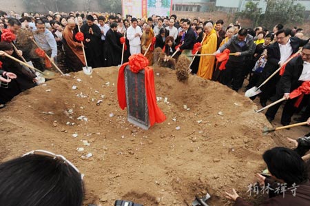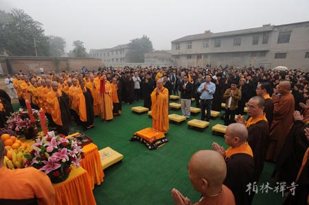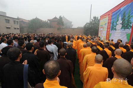 佛教在线河北讯 2013年10月1日,河北赵县柏林禅寺隆重举行净慧长老舍利塔奠基仪式。中国佛教协会副秘书长、河北省佛教协会秘书长肖占军居士、赵县县委王建海书记、赵县人民政府张敏周县长、赵县人大常委会黄云锁主任、赵县政协陈炜兴主席、赵县县委统战部何素娟部长,赵县民宗局徐涛局长,赵县城建局董学正局长等领导,柏林禅寺方丈明海法师,邢台大开元寺住持明憨法师等诸山长老参加了奠基仪式。净慧长老的众多皈依弟子也从四面八方赶来,近千人参加了活动。