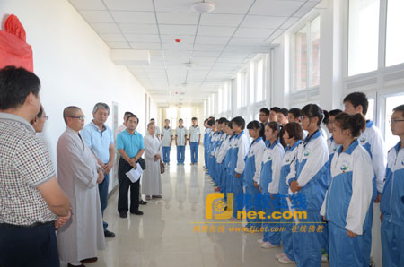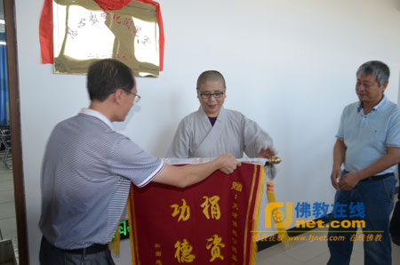 天津市佛教慈善功德基金会理事长妙贤法师、荐福观音寺知客海莲法师、基金会理事翟宝海、高向荣、和田中学领导等出席了落成剪彩仪式。