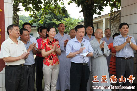 海南省省委统战部常务副部长潘建、省佛教协会副会长、三亚南山寺首座智法法师、白沙县县委副书记陈鸿亮和七坊镇镇长先后在捐赠仪式上讲话。