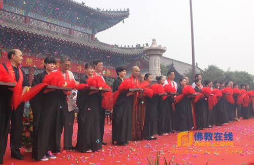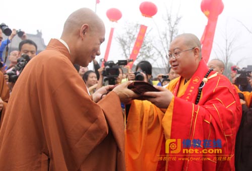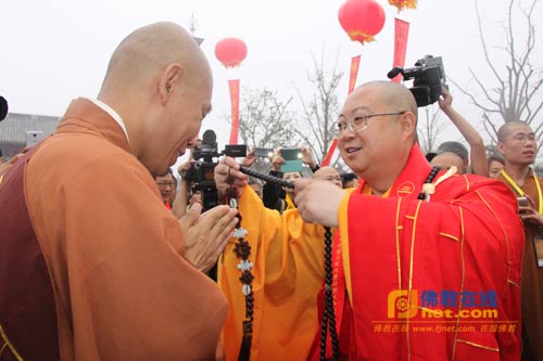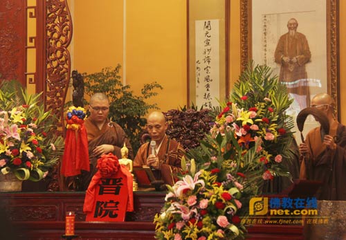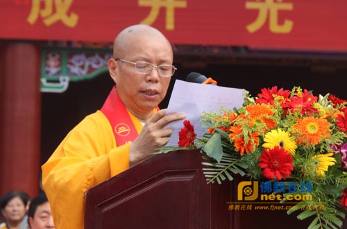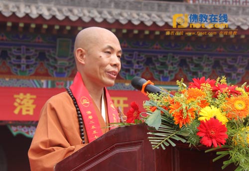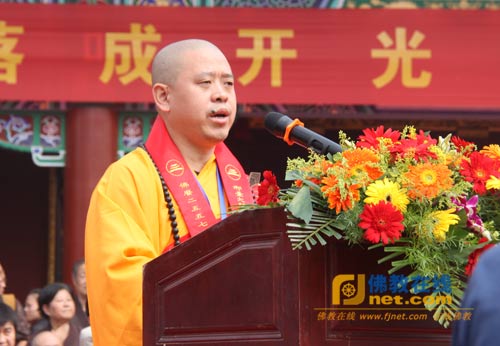 邢台市副市长李全保发表讲话;纯一法师代表诸山长老讲话,对河北邢台大开元寺落成开光暨明憨法师升座庆典活动表示祝贺。