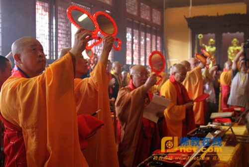 庆典仪式上,心澄法师代表中国佛教协会宣读贺电,希望明憨法师率领大开元寺两序大众在党政主管部门的领导、各级佛教协会的指导下,依靠广大信众的大力支持,高举爱国爱教的伟大旗帜,发扬与时俱进的精神,努力实践人间佛教思想,加强佛教自身建设,为佛教事业的新发展、为社会主义社会文化大发展大繁荣,为实践中华民族伟大复兴的中国梦做出更大贡献。