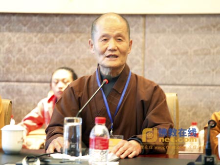 吉林省佛教协会会长、长春般若寺方丈成刚法师在论坛上发言