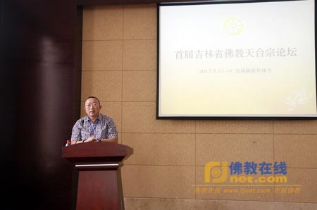 论坛由吉林省佛教协会副会长兼秘书长张海忠居士主持,前郭县华林寺住持静禅法师致欢迎词。吉林省佛教协会会长、长春般若寺方丈成刚法师作了天台宗历史及现状的主题发言,随后湛空法师、刘国良教授、陈坚教授等围绕天台宗在中国的传播,中观思想的核心,天台宗思想对现实生活的意义等进行了深入而广泛的交流。