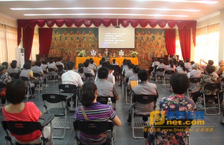 13日,从凌晨4时至晚上10时,大众通过禅修、出坡、佛学讲座、闻钟禅等各种形式,体验耳根圆通的妙用。
