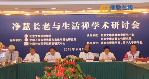 佛教在线北京讯 2013年9月12日,由北京大学宗教学系、中国人民大学佛教与宗教学理论研究所、中国社会科学院佛教研究中心联合主办的“净慧长老与生活禅”学术研讨会在北京大学英杰交流中心会议厅举行,来自海内外四十余位佛教学者共同研讨了净慧长老的佛学思想以及当代佛教的新面貌。为我国佛教事业做出杰出贡献的净慧长老,于2013年4月圆寂。净慧长老所倡导的“生活禅”是中国传统佛教最成功的现代转型之一。