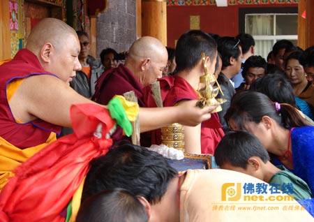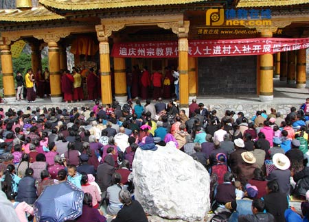 佛教在线云南讯 近日,针对迪庆藏区“8·28”、“8·31”地震,西藏自治区佛协常务理事、玉仙寺活佛阿旺扎巴和迪庆州佛教协会副会长、来远寺活佛让迥·贡觉丹增分别于2013年9月7日、9月9日在德钦县奔子栏镇夺通村和维西县塔城镇其宗村举办长寿灌顶祈福法会,两位活佛分别向前来参加法会的几千名信教群众讲经说法的同时,希望广大信教群众正确、科学地认识当前发生的地震灾害,灾害无情党有情、政府有情、干部有情,在党和政府的坚强领导下,一定能战胜困难,也希望广大信教群众积极开展生产自救、重建美好家园的工作。两位活佛还积极向灾区献爱心,阿旺扎巴活佛个人捐款10000元,让迥·贡觉丹增活佛个人捐款30000元。