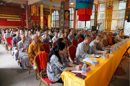 中国佛教协会副会长、湖北省佛教协会会长正慈法师发表讲话