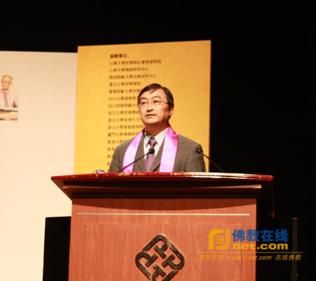 随后国家宗教事务局蒋坚永副局长致辞。蒋坚永副局长向论坛表示了祝贺,同时对慈氏学会会长郑苑娴女士,慈氏学会导师、慈氏文教基金董事长王联章先生在慈宗佛学的研究方面,在香港与内地的佛学文化交流与合作方面所做出的大量工作表示了赞许。他还谈到论坛聚集了两岸四地、欧美、日本等世界各地的精英学者,带来很多优秀的论文,必将有力推动当代佛学研究的发展和繁荣,佛教对净化人心、启迪智慧,促进经济社会发展、社会和谐、文化繁荣、生态文明建设,为民族团结、祖国统一、世界和平都做出了积极贡献。希望未来两岸四地的佛教界、学界与来自世界各地的同道共同努力,提升佛学研究的现代水平,将佛教优秀的思想传统转化成当代生活的智慧,为中华文化的发展繁荣和人类文明的进步做出新的贡献。