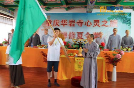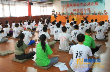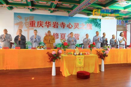 佛教在线重庆讯 2013年“重庆华岩寺心灵之旅禅修夏令营”大型寺院生活体验活动于8月16日上午8时在华岩寺弘法楼开营。重庆华岩寺方丈道坚法师亲临现场开示,鼓励参营大众在寺院清苦的环境当中放下浮尘烦恼,让身心清净安宁,选择智慧豁达的人生。愿在接下来的几天中,每一位参营者都亲近正法,同沾法益、法喜充满。