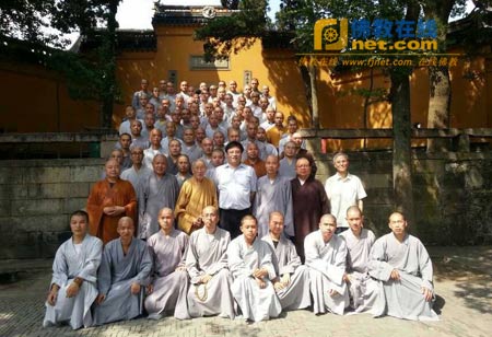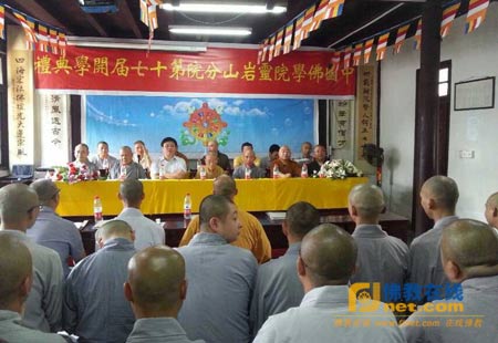 佛教在线江苏讯 2013年8月15日下午,中国佛学院灵岩山分院第十七届开学典礼在苏州灵岩山寺举行。