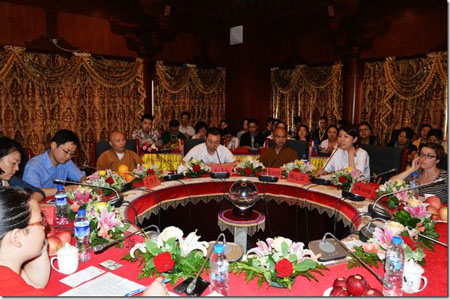 佛教在线北京讯 2013年7月27日下午,正值北京龙泉寺六· 一九”观世音菩萨成道日法华法会举办之际,多语种分会场“多元文化中的慈悲——社会互助”主题论坛在该寺明心阁四层举办。来自社会各界的180多位嘉宾和听众,包括土耳其、德国、俄国、意大利等地的外国友人,齐聚一堂,围绕论坛主题进行了热烈的探讨和交流。龙泉寺监院悟光法师出席论坛并发表总结讲话。