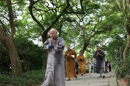 佛教在线浙江讯 2013年7月13日,杭州灵隐寺方丈光泉法师率僧俗弟子20多人前往普陀山朝圣,以自己虔诚的朝圣之行现身说法,再次向世人展现了现代中国佛教僧人精进、正行、苦修、济生的清净庄严形象。
