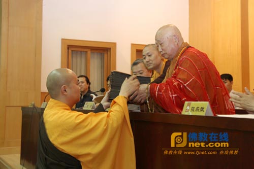 中国佛教协会会长、中国佛学院院长传印长老为毕业生颁发毕业证书