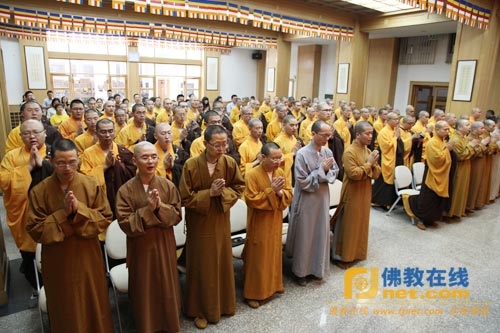 中国佛学院副教务长广如法师、教处务主任理证法师、研究部主任园慈法师、教务长副主任觉灯法师、永兴法师在毕业典礼主席台就座。