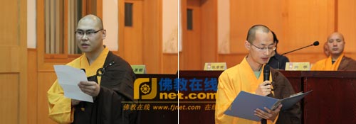 常学法师向2013届本科班毕业生致贺词;合文法师代表2013届本科班毕业生答谢词