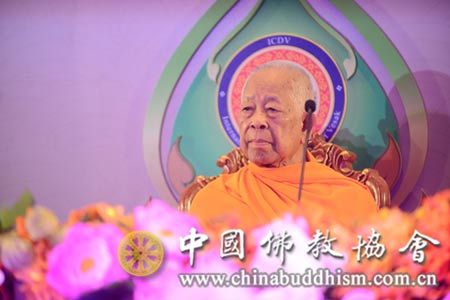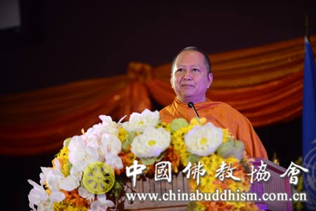 5月21日上午,在大会开幕仪式上,祜巴龙庄勐副会长代表中国佛教协会发表致辞,致辞感谢泰国政府与摩诃朱拉隆功大学的邀请,对“联合国卫塞节”庆典十周年纪念大会暨庆祝泰僧王智护尊者座下百岁寿辰等活动的隆重举行表示祝贺。致辞还回顾了“联合国卫塞节”庆典活动举办十届以来所取得的重要成就并指出“联合国卫塞节”庆典为联结世界佛教徒与世界各国各地区人民,在维护世界和平、促进可持续发展、建设公正民主的文明社会以及解决全球危机等重大问题上,都发挥了积极而重要的作用。并期待这一重要的国际佛教交流平台为世界佛教的发展,做出新的更大的贡献。致辞指出中国佛教协会派团出席了在泰国举行的历年的联合国卫塞节庆祝活动,与世界各国佛教徒一道,感念佛陀的恩德,追寻佛陀的足迹,共同继承、发展并弘扬“联合国卫塞节”所体现的佛教慈悲与智慧的精神,将其传播到整个世界。