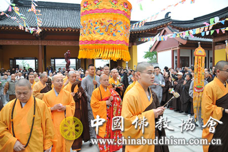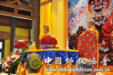 上午8时,悟实法师升座庆典举行。首先在内山门法台处迎请悟实法师,由中国佛教协会副会长、江西省佛教协会会长纯一法师为悟实法师授祖衣;山东省佛教协会会长、淄博普照寺方丈仁昌法师为悟实法师挂珠;新加坡佛教总会主席、光明山普觉禅寺方丈广声法师为悟实法师送如意;中国佛家协会副秘书长、北京广济寺方丈演觉法师授具;世界供斋僧大会主席净耀法师送拂尘;台北佛教会理事会、海明寺方丈明光法师送钵;黑龙江省佛教协会会长、哈尔滨极乐寺方丈静波法师送龙仗;宁夏自治区佛教协会会长、银川甘露寺方丈耀正法师为悟实法师送锡杖,中国佛教协会驻会副会长学诚法师送位。随后,诸山长老汇聚法堂,悟实法师登法座,为大众讲法。