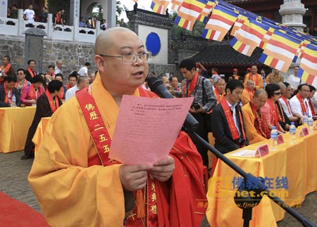 中国佛教协会副会长、湖北省佛教协会会长正慈法师代表省佛协发表了热情洋溢的讲话