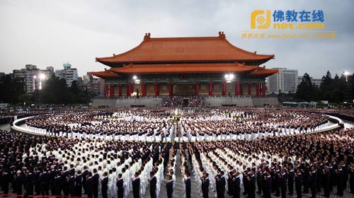 佛教在线台湾讯 2013年5月12日,慈济基金会举办全球浴佛大典,庆祝“佛诞节、母亲节、慈济日”三节合一,逾32万人参加。 在全台的浴佛法会,从12日晨在花莲静思堂由证严法师主持的浴佛大典启航后,全台各地均会举行慈济浴佛典礼,而一整天的重头戏就是当晚6时在台北市中正纪念堂举行的两场次浴佛大典,台湾地区领导人马英九、副领导人吴敦义、“立法院长”王金平及各界人士,共计三万多人参与盛会,一同祈愿人心净化、社会祥和、天下无灾。