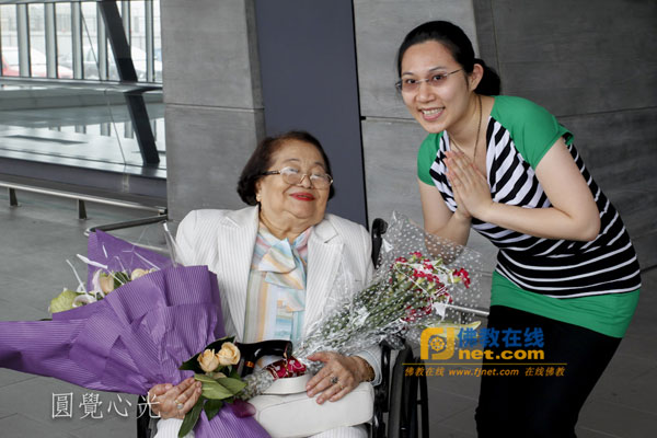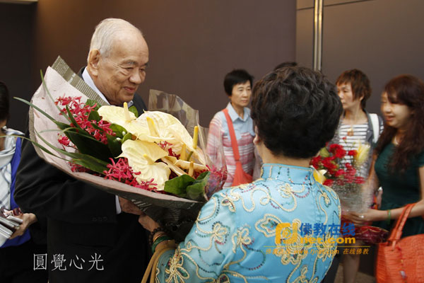 台湾中华佛教居士会前理事长洪玉琇代表全体人员向会长献花