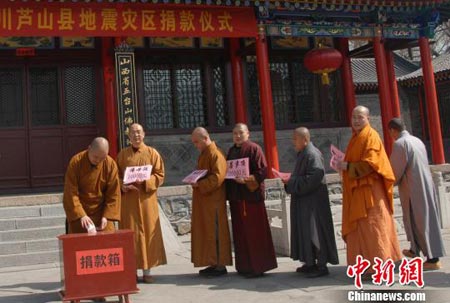 据了解五台山景区政府及寺院僧众还将继续为灾区捐款捐物,为雅安灾区人民渡过难关做出应有的贡献。(文:张王兵 高峰毅 范彦俊 焦瑾琦)