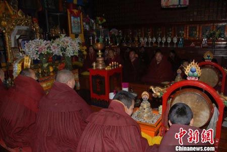 4月27日上午,五台山佛教界僧众为四川雅安地震灾民祈福(图:高峰毅)