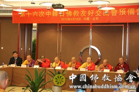佛教在线北京讯 2013年4月18日上午9时,第十六次“中韩日佛教友好交流会”预备会议在北京隆重举行,预备会议讨论和签订举办第十六次“中韩日佛教友好交流会”协议书。会议商定:第十六次“中韩日佛教友好交流会”将于2013年11月26日至28日在中国海南省三亚市举办,主题为“自然灾害后的心灵救助”。